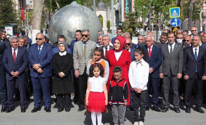 Törende konuşma yapan İl Milli Eğitim Müdürü Hatice Özdemir, “23 Nisan, ülkemizin ve milletimizin belleğinde yeniden ayağa kalkmanın, bağımsızlık tutkusunun alevlenmesinin ve halk iradesinin birleşmesinin güçlü bir ifadesidir. Milli mücadele ile milli egemenliğin kazanılması Gazi Mustafa Kemal Atatürk önderliğinde milletimizin ortaya koyduğu büyük fedakarlık ve kahramanlık sayesinde gerçekleşti. Hiç şüphesiz yediden yetmişe hepimiz bunun bilincindeyiz” diye konuştu.