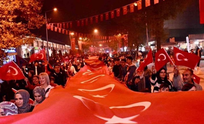 Akşam saatlerinde Doğa Cadde AVM önünde toplanan protokol üyeleri ve vatandaşlar, bayrak ve meşalelerle kortej yürüyüşü gerçekleştirdi. Vali Yavuz, burada yaptığı konuşmada, "Hür ve bağımsız bir Cumhuriyet inşa ettik. Bu vesileyle Gazi Mustafa Kemal Atatürk’ü, silah arkadaşlarını, aziz şehitlerimizi ve kahraman gazilerimizi rahmet, minnet ve şükranla anıyoruz" dedi.