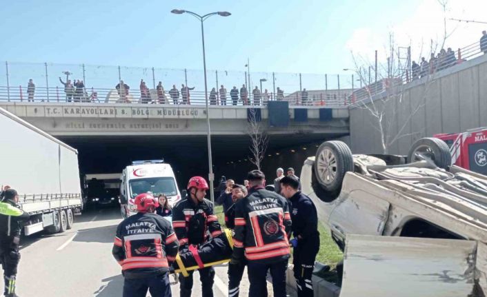 Edinilen bilgilere göre, bölgede aynı yöne seyir halinde olan H.B. idaresindeki 44 FS 413 plakalı otomobil ile A.U. yönetimindeki 34 DG 1337 plaka sayılı otomobil çarpıştı. Kazada savrulan araçlardan biri orta refüje çıkarak ters dönerken sürücüler yaralandı. İhbar üzerine bölgeye polis, sağlık ile itfaiye ekipleri sevk edildi.