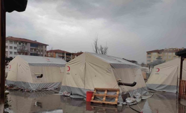 Malatya’da bir süredir etkili olan sağanak yağış hayatı olumsuz etkiledi. Deprem nedeniyle evleri yıkılan ve ağır hasar alması sonucu çadırlarda yaşayan bir çok depremzedenin kaldığı çadırları da sağanakta nasibi aldı.