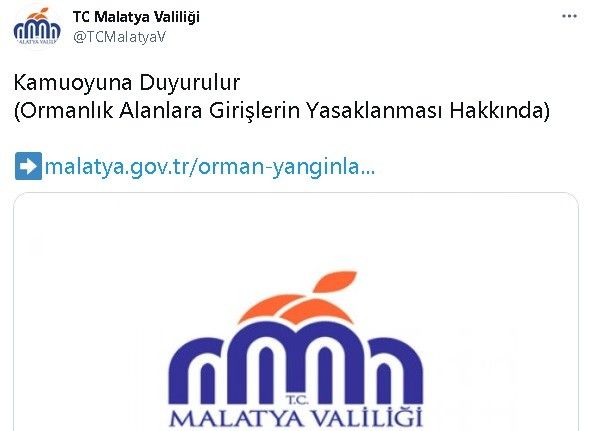 Malatya Valiliği, Ağustos ayı boyunca ormanlık alanlara girişlerin yasaklandığını açıkladı.