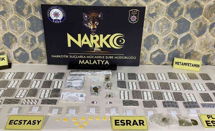 Malatya İl Emniyet Müdürlüğü Narkotik Suçlarla Mücadele Şube Müdürlüğü ekipleri, Malatya ve İstanbul’da 18 adrese eş zamanlı uyuşturucu operasyonu düzenledi. Operasyonlarda 2 kilo 791 gram metamfetamin, 562 adet yeşil reçeteye tabi hap, 14.25 gram kubar esrar, 2 gram toz esrar maddesi, 29 adet extacy hap ile 2 adet hassas terazi ele geçirilirken, 18 zanlı gözaltına alındı.