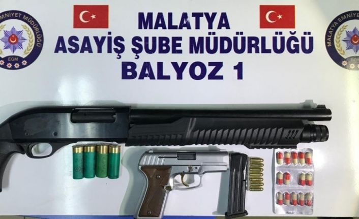 Malatya Emniyet Müdürlüğü görevlilerince yapılan çalışmalarda, 107.93 gram narkotik madde, 75 adet uyuşturucu ve uyarıcı nitelikte hap, 4 adet tabanca 25 adet fişek, 2 adet kurusıkı tabanca, 3 adet ruhsatsız tüfek ve 1 adet kesici alet ele geçirildi.