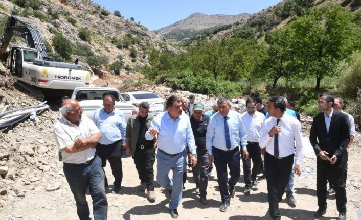 Yapılan çalışmaların vatandaş nezdinde memnuniyetle karşılanmasının kendilerini mutlu ettiğini belirten Başkan Gürkan ise Malatya’nın her noktasının şu anda şantiye halinde olduğunu vurgulayarak “Pandemiye, büyük deprem felaketine rağmen böyle bir yatırım hakikaten takdire şayan. Çapo gurup ve Melet Deresi diye tabir ettiğimiz ve üç ilçemizdeki mahalleleri besleyecek olan kaynağı görmek ve yapılacak olan çalışmaları yerinde görmek bu bölgemize geldik. Doğanın zor şartları içerisinde gerçekleştirilen bu çalışma destansı bir çalışmadır. Bunun adı hizmet destanıdır. Bu çalışmada emeği bulunanlarda birer kahramandır. Bu dağların başında zor şartlarda depremzede olmalarına rağmen ailelerini bırakıp vatandaşlarımızın su ihtiyacını karşılamak için göstermiş oldukları bu özveriden dolayı kendilerini tebrik ediyorum” şeklinde konuştu.