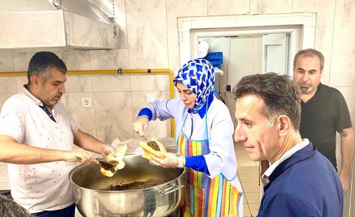 Malatya İl Milli Eğitim Müdiresi Hatice Özdemir, meslek okulu ziyaretinde, önlük ve eldiven giyerek öğrencilere yemek ikram etti.
