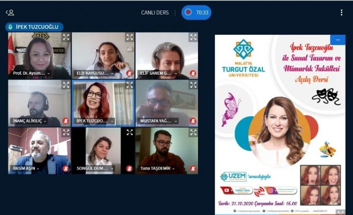 Açılışta konuşan Rektör Prof. Dr. Rektör Prof. Dr. Aysun Bay Karabulut, Sanat Tasarım ve Mimarlık Fakültesi’nin 2020-2021 akademik yılının açılış dersine katılan sanatçı İpek Tuzcuoğlu’na teşekkür ederek, “Üniversitemizin kıymetli dostu ve destekçisi İpek Tuzcuoğlu’na teşekkür ediyorum. Eğitimde işin ustaları ve öğrencilere rol model olacak çalışmak isimlerle gerekiyor. Sanat Tasarım ve Mimarlık Fakültesi birinci yılımızda alt yapısını hazırladığımız ve ikinci yılımızda bu yıl eğitim ve akademik faaliyetine başlayan 4 fakültemizden birisi. Bu yıl Sanat Tasarım ve Mimarlık Fakültesinde eğitimlerine başlayan toplam 59 öğrencimi tebrik ediyorum, başarılar diliyorum. Sahne Sanatları Bölümüne özel yetenek sınavı ile 19 öğrencimizi aldık. Görsel İletişim Tasarımı Bölümünde 40 öğrencimiz eğitimlerine başladılar. Sahne Sanatları Bölümüne çok önemsediğim bir bölüm, Çünkü bölgemizde yükseköğretimde böyle bir bölüm Malatya Turgut Özal Üniversitesi bünyesinde açıldı.” dedi.