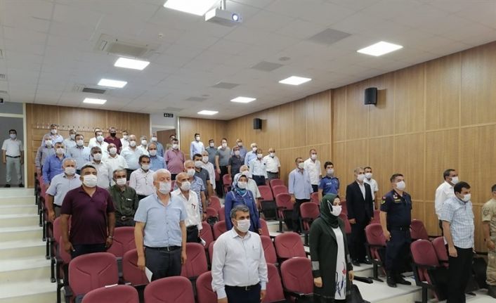 Meslek Yüksek Okulu Konferans Salonunda, Sağlık Bakanlığı’nın Covid-19 Salgın Yönetimi ve Çalışma Rehberine uygun şekilde düzenlenen toplantıya, Kaymakam Hulusi Teke, İlçe Belediye Başkan Yardımcıları, İlçe kurum amirleri ve mahalle muhtarları katıldı. Toplantının açılışında konuşan Kaymakam Hulusi Teke yaptı. Teke, covid-19 ile mücadele kapsamında ilçedeki muhtarlarla sürecin başından itibaren telekonferans yöntemi ile irtibat halinde olduklarını belirterek, "Normalleşme süreci ile birlikte muhtarlarımızla fiilen bir araya gelerek süreci değerlendirme ve alınacak tedbirleri istişare etme fırsatı bulduk” dedi.