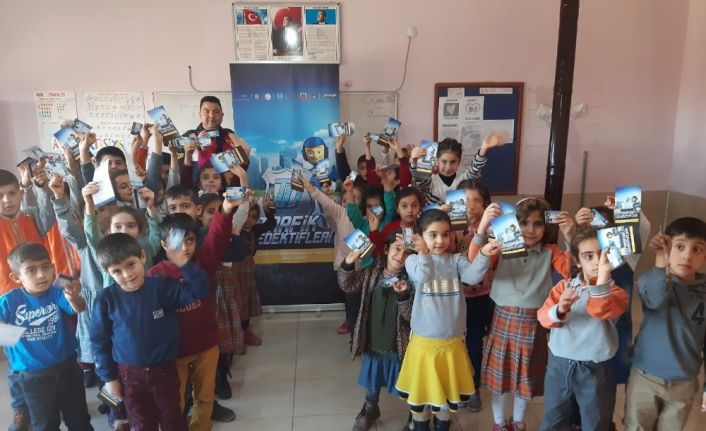 Karne dağıtımı esnasında jandarma tarafından öğrencilere çikolata, trafik dedektifleri kartı ve trafik bilgilendirme broşürleri dağıtıldı.