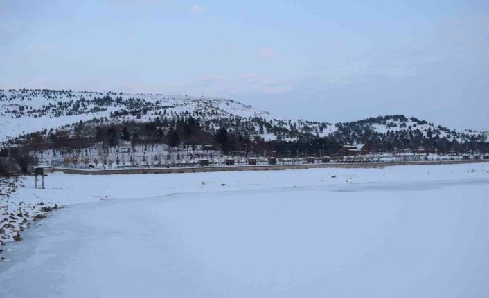Türkiye genelinde etkisini sürdüren soğuk hava Malatya’yı da etkisi altına alırken, yer yer hava sıcaklığının eksi 20 dereci gördüğü kentte Pınarbaşı mesire alanında bulunan Orduzu Göleti’nin yüzeyi buzla kaplandı.