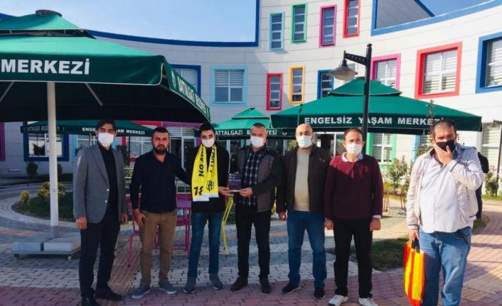 Battalgazi Belediyesi Engelsiz Yaşam Merkezini ziyaret eden Malatyaspor Derebeyleri Taraftarlar Derneği üyeleri, burada eğitim gören özel gereksinimli bireylere forma hediye ettiler.