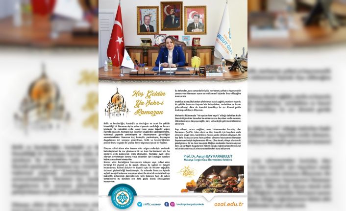 Malatya Turgut Özal Üniversitesi (MTÜ) Rektörü Prof. Dr. Aysun Bay Karabulut, Ramazan Ayı mesajında, Ramazan Ayı’nın iyi değerlendirilmesini önerdi.