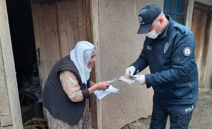 Korona virüs salgını nedeniyle uygulanan tedbirler kapsamında evlerinden çıkamayan 65 yaş üstü yaşlılar için İlçe Emniyet Amirliği gece gündüz mesai yapıyor. Bin liralık sosyal yardımları ve yaşlılık aylıkları dahil hak sahiplerine tek tek dağıtan emniyet mensupları hem vatandaşın hayır duasını alıyor hem de halkı salgına karşı bilinçlendiriyorlar.