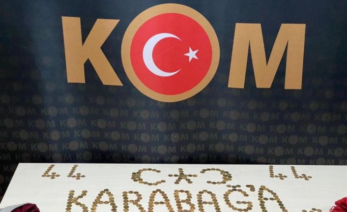 Malatya polisi operasyonda ele geçirilen altın sikkelerle "Karabağ’a Selam" yazarak, Ermenistan’a karşı mücadele veren Azerbaycan’a destek mesajı gönderdi.