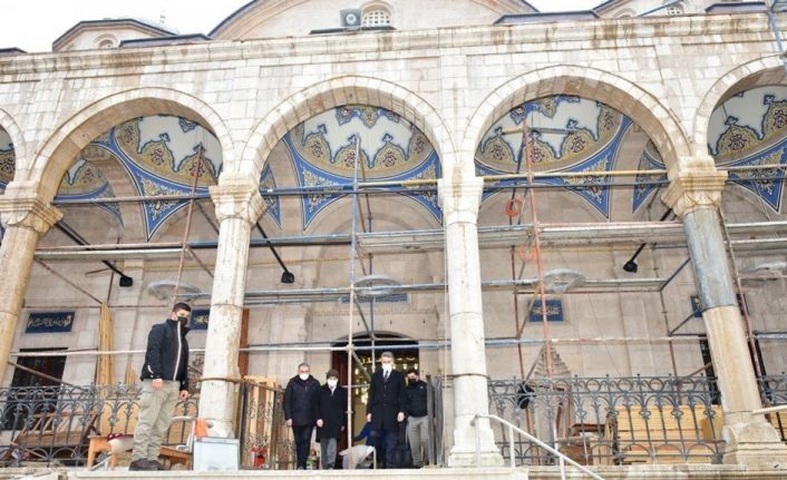 Vali Aydın Baruş, depremden zarar görmesi nedeniyle tadilata alınan Yeni Cami’deki çalışmaları inceledi.