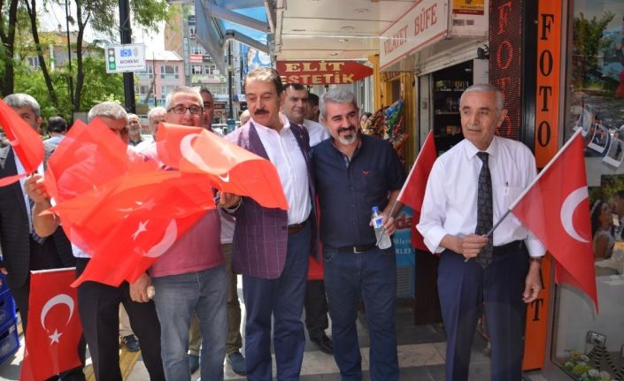 “15 Temmuz Demokrasi ve Milli Birlik Günü” etkinlikleri kapsamında Malatya Esnaf ve Sanatkarlar Odaları Birliği (MESOB) Başkanı Şevket Keskin ve diğer oda başkanları tarafından vatandaşlara Türk Bayrağı dağıtıldı.
