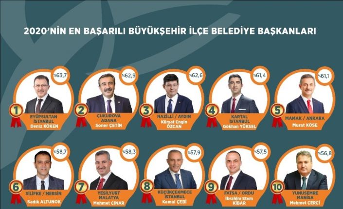 Nüfusu 50 binin altında kalan belediyelerin dâhil edilmediği araştırmada, ‘2020’nin En Başarılı Büyükşehir İlçe Belediye Başkanları’ kategorisinde yüzde 58,3 oranıyla 7’nci sırada yer alan Yeşilyurt Belediye Başkanı Mehmet Çınar, büyük bir başarının altına imza attı.