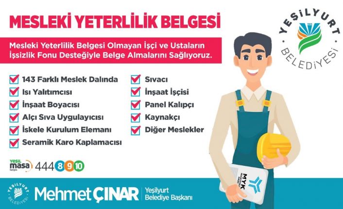 Malatya’nın Yeşilyurt Belediye Başkanı Mehmet Çınar, “Mesleki Yeterlilik Belgesi bulunmayan belediye personellerimizin yanı sıra ilçemiz genelindeki sanayi alanlarında riskli ve tehlikeli işlerde çalışan işçi ve ustalarımıza işsizlik fonu desteğiyle belge almalarının önünü açmak için eğitim programlarına başladık” dedi.