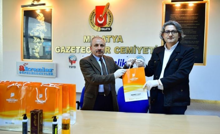 Malatya’nın Yeşilyurt İlçesi Belediyesi, yeni tip korona virüs salgınıyla mücadele kapsamında, Malatya Gazeteciler Cemiyetine kolonya, maske ve eldivenlerin bulunduğu paketler verdi.