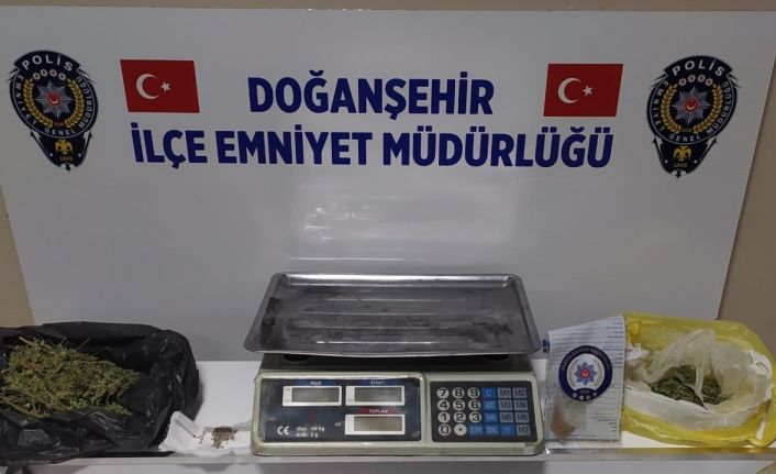 Malatya il Emniyet Müdürlüğü ekipleri Doğanşehir ilçesinde uyuşturucu ticareti yaptığı tespit edilen iki şahsa ait adreslere operasyon düzenlendi. Düzenlenen operasyonda 169 gram esrar maddesi ile 1 adet hassas terazi ele geçirildi.