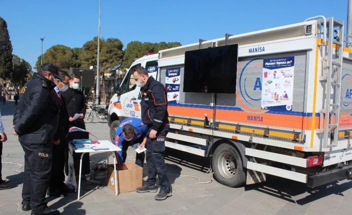 İçişleri Bakanlığının 2021 yılını Afet Eğitim Yılı ilan etmesinin ardından Manisa Valiliği İl Afet Acil Durum (AFAD) Müdürlüğü teorik eğitimlerin yanı sıra broşürlü tanıtım çalışmaları da yapıyor. Alaşehir Cumhuriyet ve Demokrasi Meydanı’nda kurulan stantta vatandaşlara broşür dağıtılarak ve ses sitemiyle bilgilendirme yapıldı. Tanıtım çalışmalarında deprem, yangın, sel gibi doğal afetlere karşı her an hazırlıklı olunması gerektiği, afetler karşısında afet ve acil durum çantası, beslenme ihtiyaçlarının karşılanabileceği gıdalar bulundurma, hijyenik maddeler bulundurma, kimlik bilgilerinin kişilerin yanında olması, ilk yardım çantası, radyo, el feneri, yedek pil, gibi zorunlu ihtiyaçların hazırlanması ve kullanılması gibi bilgilere sahip olunması anlatıldı. Vatandaşlara konuyla ilgili hazırlanan broşürler de dağıtıldı. Alaşehir Kaymakamı Abdullah Uçgun da çalışmaları yerinde izleyerek, bilgi aldı. Manisa AFAD Müdürlüğü uzmanı İbrahim İşlek, "AFAD ekipleri olarak, değişik toplantılar düzenleyerek teorik bilgilendirme çalışmaları yapıyoruz. Minibüse kurduğumuz ses sistemleri ile ilçelerimiz ziyaret ederek belirli yerlere stantlar açıyoruz. Burada vatandaşlara brüşür dağıtıyoruz, afet ve acil durumlar hakkında bilgilendirme, ses sistemiyle anlatım çalışmaları yapıyoruz." dedi.