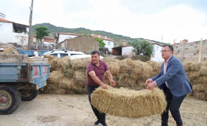 Alaşehir Belediyesi kırsal mahallerde saman dağıttı