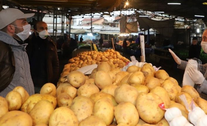 Turgutlu Belediye Başkanı Çetin Akın, Başkan Yardımcısı Evren Erbaş Ser, Manavlar Odası Başkanı Necati Gürkıvrak ile birlikte Pazartesi Pazarında esnafa ve vatandaşlara ücretsiz maske dağıttı.