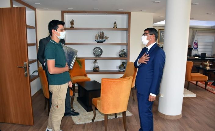 Şehzadeler Belediye Başkanı Ömer Faruk Çelik, TEKNOFEST 2021’de İnsanlık Yararına Teknoloji dalında ‘Öz Konum Projesi’ ile finale kalan Manisa Fen Lisesi 11. sınıf öğrencisi Barış Ersan’ı tebrik ederek, başarılı öğrenciye yazıcı hediye etti.