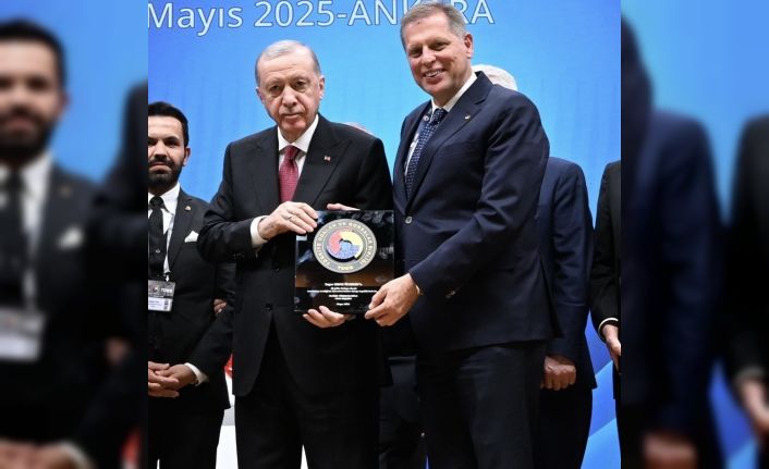 Manisa Ticaret Borsası Başkanı Sadık Özkasap, TOBB’daki 20 yılı aşkın sürdürdüğü delegelik görevi dolayısıyla hak kazandığı ‘Hizmet Şeref Belgesi’ni Cumhurbaşkanı Recep Tayyip Erdoğan’ın elinden aldı.