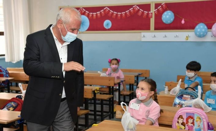 Soma Belediye Başkanı Ali Tulup, korona virüs tedbirleri kapsamında ara verildikten sonra yeniden sınıflarına yeniden dönen öğrencilere helva dağıttı.