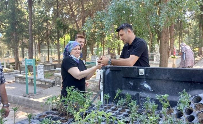 Kurban Bayramı öncesinde il genelinde bulunan mezarlıkların temizlik, bakım ve onarım çalışmalarını hassasiyet içerisinde yürüten Manisa Büyükşehir Belediyesi, kabir ziyaretlerine gelen vatandaşlara Büyükşehir Belediyesinin Karaoğlanlı Mahallesi’nde bulunan serasında yetişen çiçeklerden hediye etti.