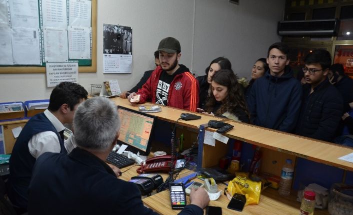 Manisa’nın Demirci ilçesinde okulların tatil edilmesi ile birlikte ilçede öğrenim gören yükseköğrenim öğrencileri otogara bilet alabilmek için akın etti.