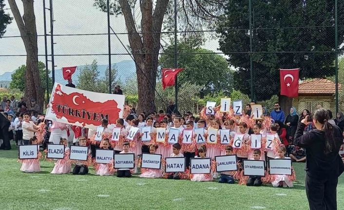 Manisa’nın Sarıgöl ilçesinde ilkokul öğrencilerinin, depremin vurduğu iller için hazırladığı etkinlik izleyenleri duygulandırdı.