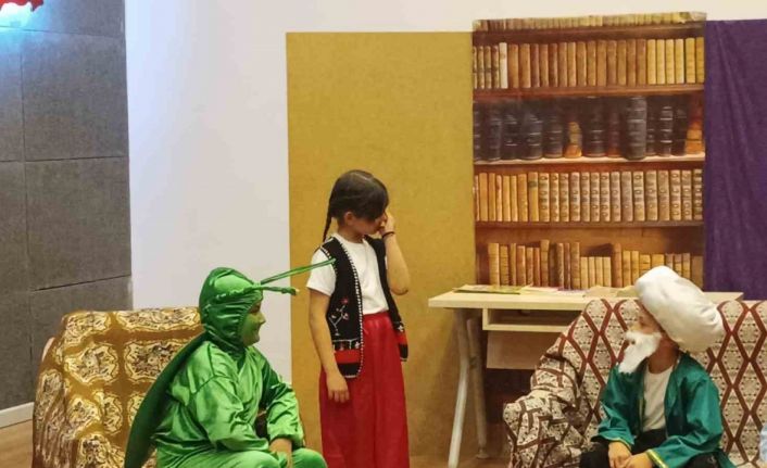 Sarıgöl Halk Eğitimi Merkezi Öğretmeni Pınar Yalçın tarafından yazılan oyunda minikler tiyatro hünerlerini sergilerken, oyun izleyiciler tarafından büyük alkış aldı.