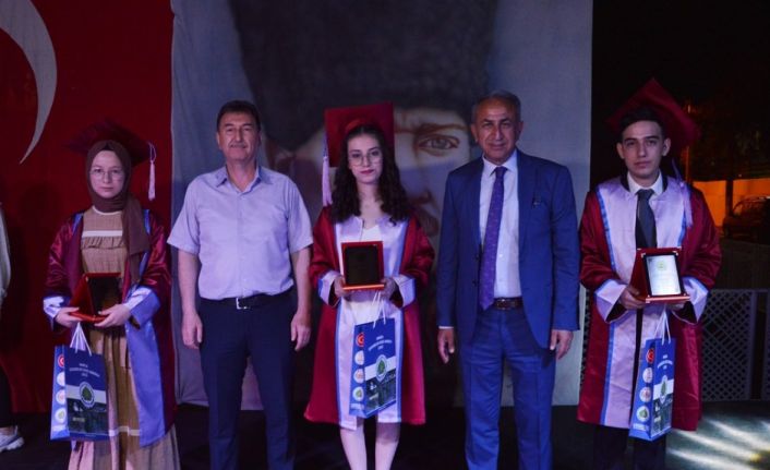 Okul birincisi Dilay Gürcan, ikincisi Azime Şen ve üçüncüsü Vural Özçelik’e protokol üyeleri tarafından plaket takdim edildi. Dilay Gürcan okul kütüğüne plaket çaktı. temsili diplomalarını alan öğrenciler Müzik Öğretmeni Ömür Yılmaz eşliğinde önce okul marşını söyledi, ardından keplerini havaya fırlatarak mezuniyet coşkusunu yaşadı.