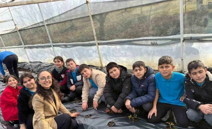 Manisa’nın Gördes ilçesine bağlı Çiğiller İlköğretim Okulu bahçesinde, "Sevgimizi Seramızda Büyütüyoruz" projesi kapsamında 150 metrekarelik alanda kurulan serada çilek dikimi gerçekleştirildi.
