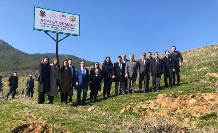 Alaşehir Denetimli Serbestlik Müdürlüğü tarafından yürütülen ağaçlandırma çalışmaları kapsamında Alaşehir Adalet Ormanına bin adet fıstık çamı dikimi gerçekleştirilecek. 20 hükümlünün de katıldığı ağaçlandırma çalışmasında ilk fidanlar bugün dikildi.