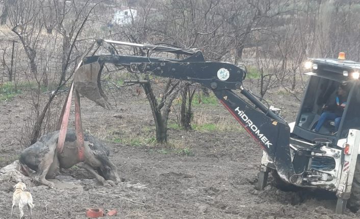 Manisa Büyükşehir Belediyesi İtfaiye Dairesi Başkanlığı’na bağlı itfaiye ekipleri, Demirci ilçesi Dr. Mehmet Akarsu Mahallesi’nde doğum yaptığı yerde çamura saplanarak mahsur kalan ineği yapılan çalışma ile kurtararak, sahibine teslim etti. Yoğun çamurda yapılan kurtarma operasyonunda iş makinesinden de yardım alan ekipler, ineği zarar görmeden kurtararak sahibine teslim etti.