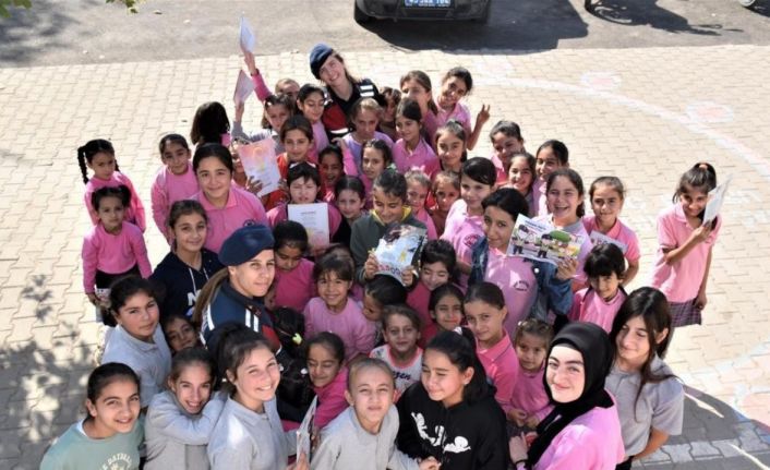 Kız çocukları ziyaret sırasında özellikle kadın jandarma astsubaylara oldukça fazla ilgi gösterdi.