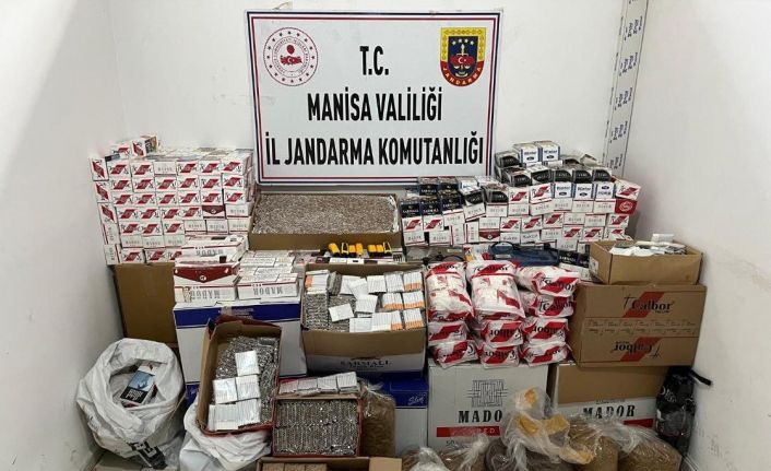 Manisa İl Jandarma Komutanlığı KOM Şube Müdürlüğünce yapılan çalışmalar neticesinde Yunusemre ilçesinde İ.O., M.O., İ.O. ve C.O. isimli şahısların ikametlerinde yapılan arama neticesinde piyasa değeri 1 milyon 210 bin TL olduğu değerlendirilen, 752 bin 780 adet içi tütün doldurulmuş makaron sigara, 225 kilogram açık kıyılmış tütün, 1 milyon 278 bin 800 adet boş makaron, 15 adet sigara sarma makinası, 160 bin adet sigara filtresi, 1 milyon 366 bin 400 adet sigara sarma kağıdı, çok miktarda kilitli poşet, 18 adet 7.65 mm çapında tabanca fişeği ele geçirildi. Jandarma şüpheliler hakkında adli işlemlere başlandığını açıkladı.