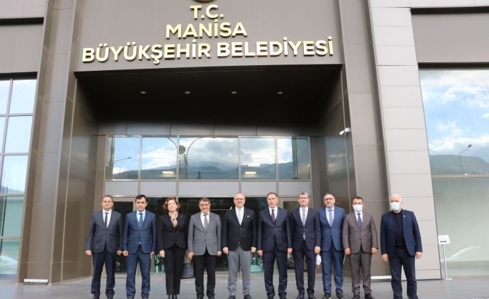 Kamu Baş Denetçisi Şeref Malkoç Manisa Büyükşehir Belediye Başkanı Cengiz Ergün ile Manisa Ticaret ve Sanayi Odası Başkanı Mehmet Yılmaz’ı ziyaret etti.