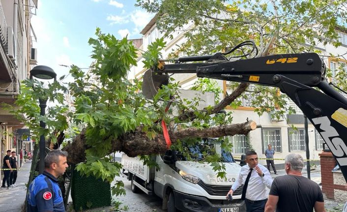 Manisa’nın Akhisar ilçesinde tarihi çınar ağacı kamyonetin çarpması sonucu devrildi.