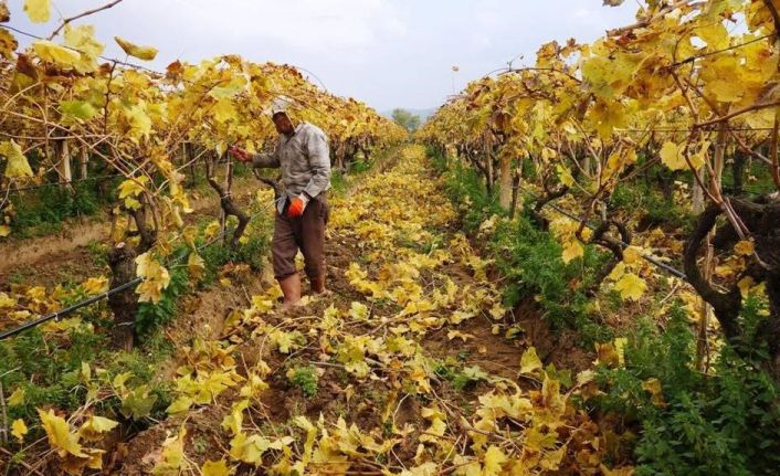 Örtü altında uzun süre kalan bağlarda yaprakların sararmasıyla oluşan görüntünün çalışmaya ayrı bir huzur kattığını belirten budama işçileri, "Bu güzellik içinde çalışmak bizlere huzur veriyor. Bağ yapraklarının sapsarı ve kahverengiye bürünen hali görülmeye değer" ifadelerini kullandı.