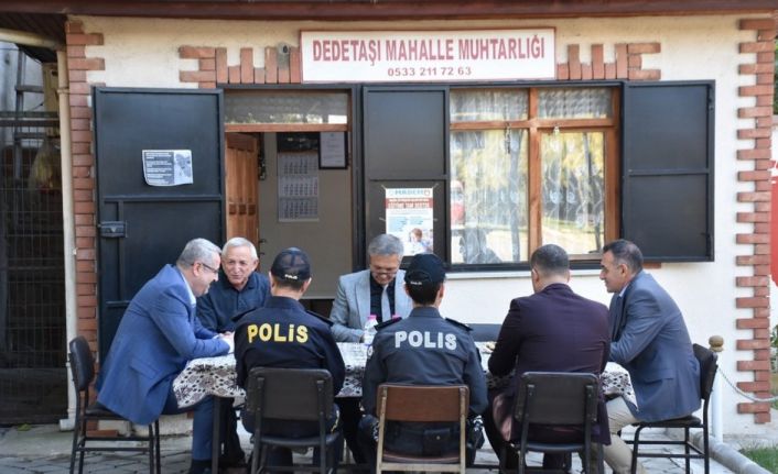 Vatandaşların görüş, sorun ve sıkıntılarını muhtarlardan dinleyen Kaymakam Sağlam, “Dedetaşı, Gümüş, Kırveli, Yörük ve Aksoy Mahalle sakinlerimizin görüş, öneri ve taleplerini muhtarlarımızdan dinledik ve sorunların çözümü noktasında notlarımızı aldık. Katkılarınız için teşekkür ediyorum.” dedi.