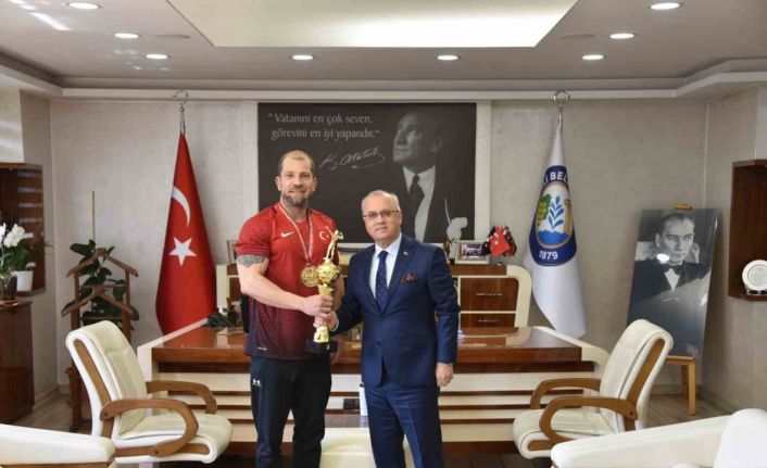 Atletik Fizik Kategorisinde Türkiye Şampiyonu olan ve milli takıma seçilen Basmacı’yı üstün başarısından dolayı tebrik eden Başkan Kayda, sporcuyu altınla ödüllendirdi.