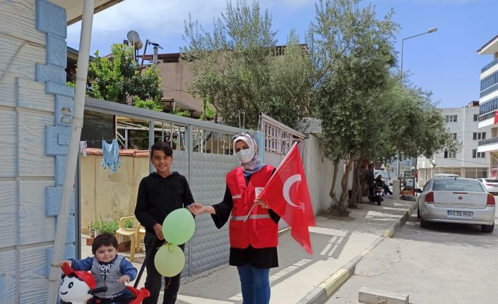 Alaşehir Kızılay Şubesi gönüllü ekipleri evlerinden dışarıya çıkamayan, ancak balkonlarda gördükleri çocukları sokağa davet ederek, bayramlarını kutlayıp balon ve çeşitli malzemelerden oluşan hediyeler dağıttı.
