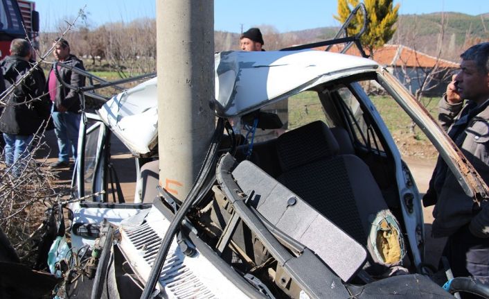 Elektrik direğine çarpan otomobil hurdaya dönerken, olayla ilgili soruşturma başlatıldı.