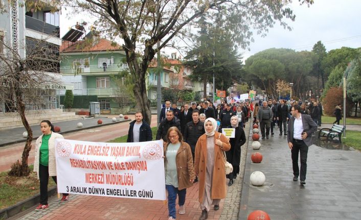 Kula 80.Yıl Engelsiz Yaşam Bakım ve Rehabilitasyon Merkezi tarafından, 3 Aralık Dünya Engelliler Günü dolayısıyla düzenlediği program, Kent Meydanı’nda bulunan Atatürk Abidesine çelenk sunulması ile başladı. Kurumun çelenginin sunulmasının ardından engelli öğrenciler ve protokol üyeleri, rengarenk balonları gökyüzüne bırakarak farkındalık oluşturdu. Ardından Kula Yaren Ekibi’nin de katıldığı programda protokol üyeleri ve engelli öğrenciler yaren ekibi eşliğinde kortej yürüyüşü düzenleyerek engelliler gününe dikkat çekti. Salon programı ise Kültür Merkezi’nde düzenlendi. İstiklal Marşı’nın okunmasıyla başlayan programda günün anlam ve önemini belirten konuşmayı Kula 80.Yıl Engelsiz Yaşam Bakım ve Rehabilitasyon Merkezi Müdürü Mehmet Artaç yaptı. Konuşmanın ardından engelli öğrenciler ve kurum personelleri tarafından hazırlanan halk oyunları gösterileri, parodi dans gösterisi, semazen gösterisi, şiirlerin okunması, koro gösterisi ve eşofmanlı Şevket hoca gösterileri sergilendi. Büyük çoğunluğu engelli öğrenciler tarafından hazırlanan program, katılımcılar tarafından büyük beğeni topladı.