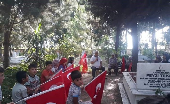 Manisa’nın Sarıgöl ilçesinde Kur’an kursu öğrencileri, 2010 yılında Siirt’in Eruh ilçesi kırsalında, teröristler tarafından döşenen mayının patlaması sonucu şehit olan jandarma komando er Feyzi Tekeş’in mezarını ziyaret ederek, dua okudu.