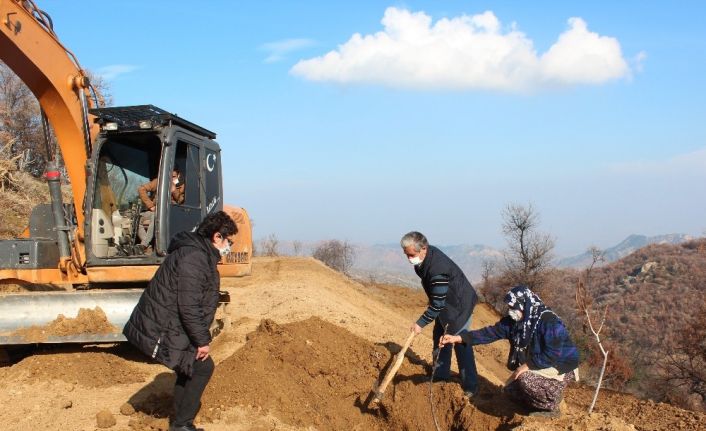 Konuşmaların ardından belirlenen araziye 3 bin adet ceviz fidanının dikimi gerçekleşti.