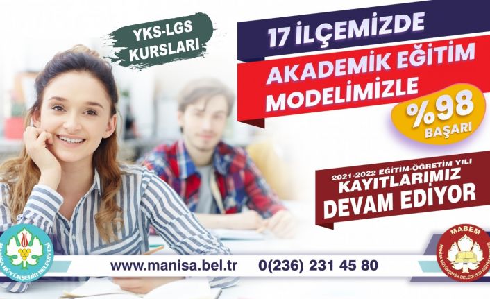 Manisa Büyükşehir Belediyesinin en önemli eğitim hizmetlerinden bir tanesi olan MABEM’lerde 2021-2022 eğitim-öğretim yılı kayıtları devam ediyor. Yüzde 98’in üzerinde başarı çıtası ve YKS-LGS yerleştirme oranlarıyla adından söz ettiren MABEM’lere kayıt olmak isteyen öğrencilerin 0236 2314580 numaralı telefondan bilgi alabileceklerini belirten Kültür ve Sosyal İşler Dairesi Başkanı Fırat Özcan, “Başkanımız Sayın cengiz Ergün’ün vizyonuyla 17 ilçemizde faaliyet gösteren MABEM’lerimize kayıtlar devam ediyor. Başarısıyla gurur duyduğumuz, her yıl üniversitelere, liselere öğrenciler gönderdiğimiz MABEM’lerimize kayıt olmak isteyen gençlerimizi kurumlarımıza bekliyoruz. Ana temamız ve hedefimiz geleceğe güvenle bakan nesiller yetiştirmek. Bu vesileyle 2021-2022 eğitim-öğretim yılının hayırlı olmasını diliyor, tüm öğrencilerimize başarılar diliyoruz” dedi.
